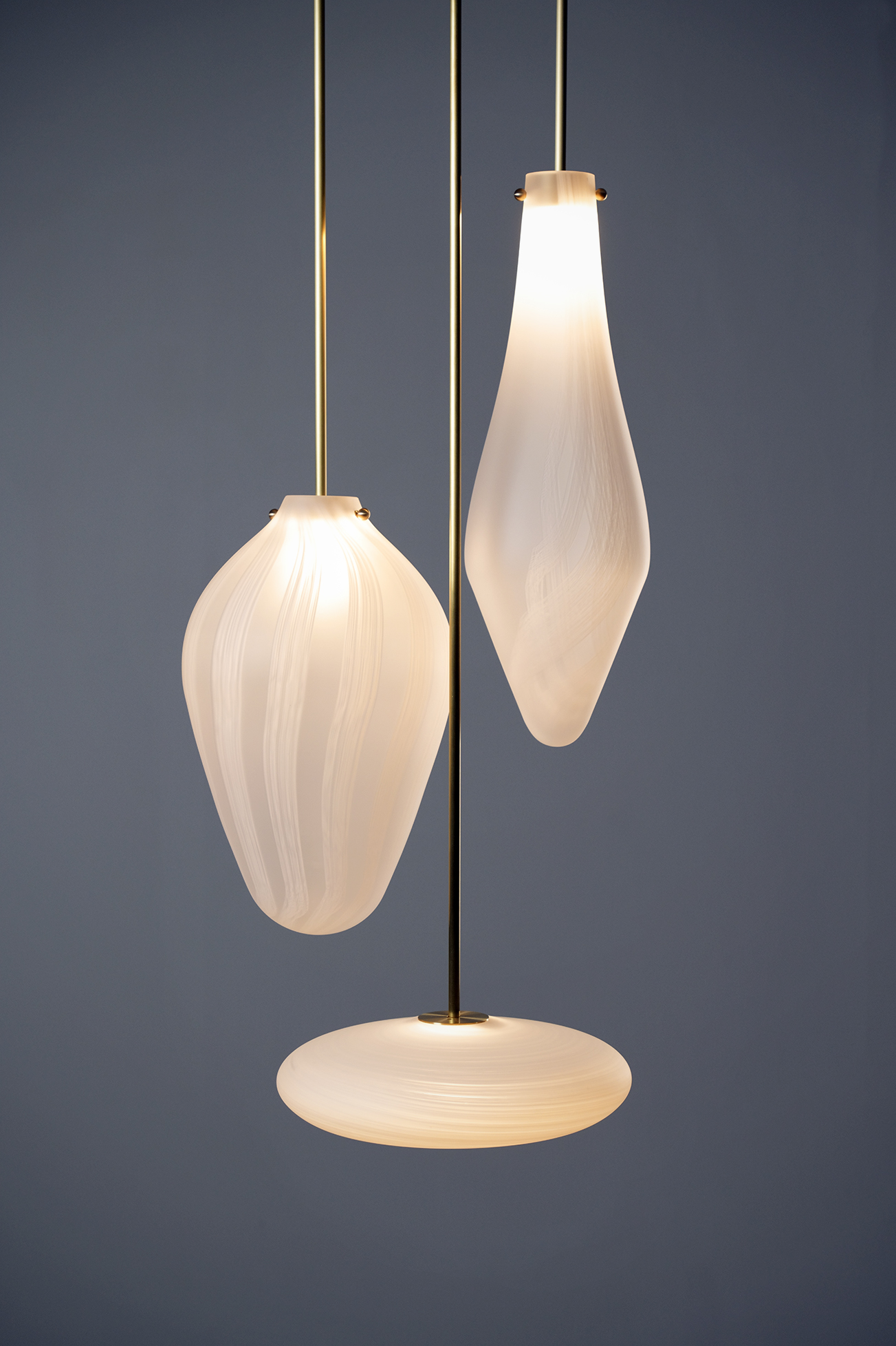 « En quête constante de l’alchimie entre lignes et lumière, l’atelier poursuit une recherche permanente d’innovation à travers l’exploration des techniques de soufflage. Du verre soufflé à main levée, gravé ou sablé, au verre filigrané, chaque pièce est le fruit d’un processus de création méticuleusement perfectionné et rigoureusement appliqué ».