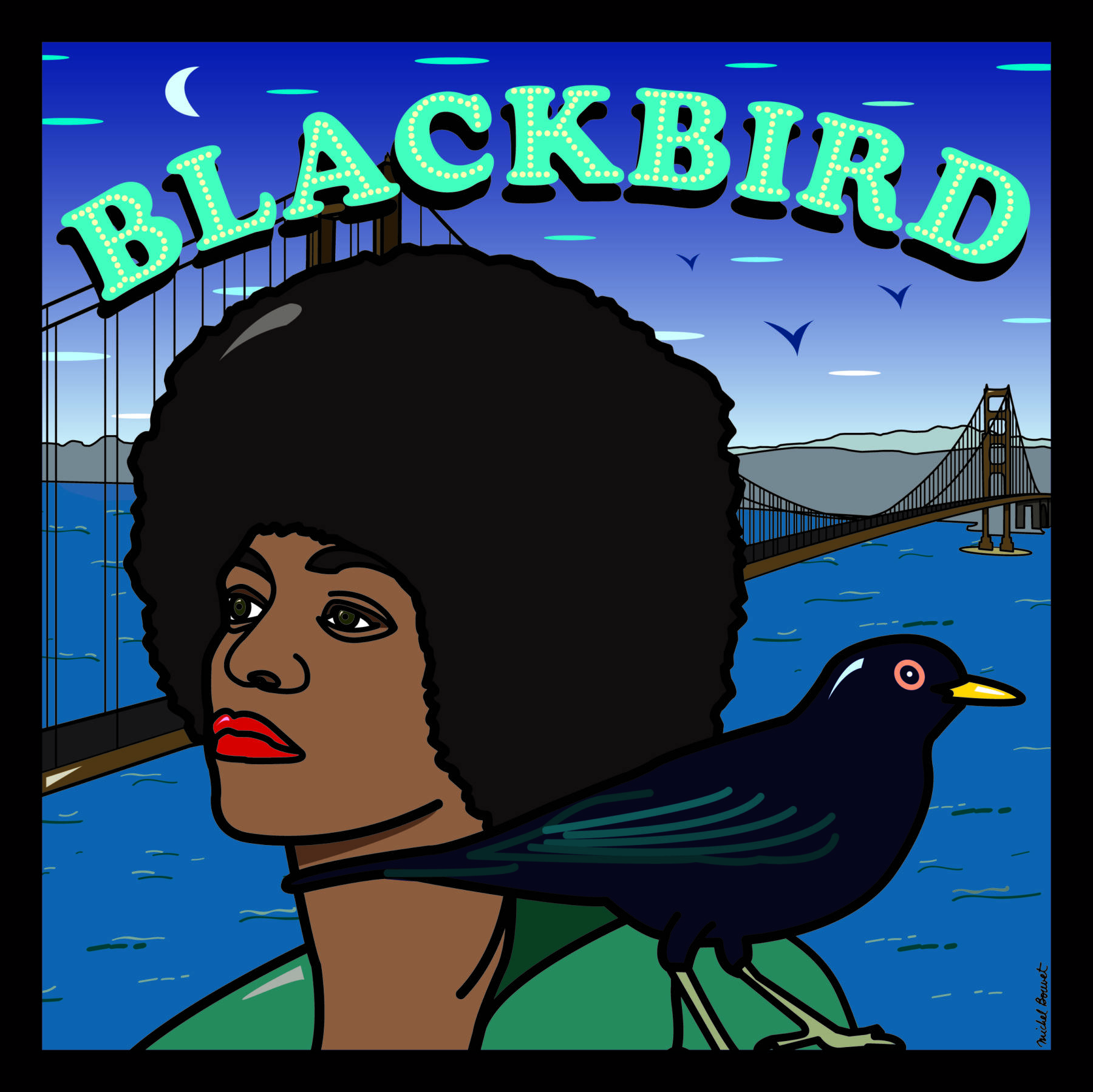 Dans I Love the Beatles, l’artiste retrouve cette énergie primitive : traduire un son en image, une émotion en signe. Michel Bouvet revisite quatre décennies de pratiques visuelles : aplats colorés cerclés de noir, typographies Sixties, compositions saturées, collages photographiques, citations graphiques discrètes. Les images laissent surgir des silhouettes, des lieux, des objets totems (guitares, vinyles, créatures oniriques, textures psychédéliques). Certaines illustrations sont légères et ludiques (Lovely Rita, Paperback Writer), d’autres mélancoliques (Blackbird, The Long and Winding Road) ou incantatoires (Revolution 1, Come Together).