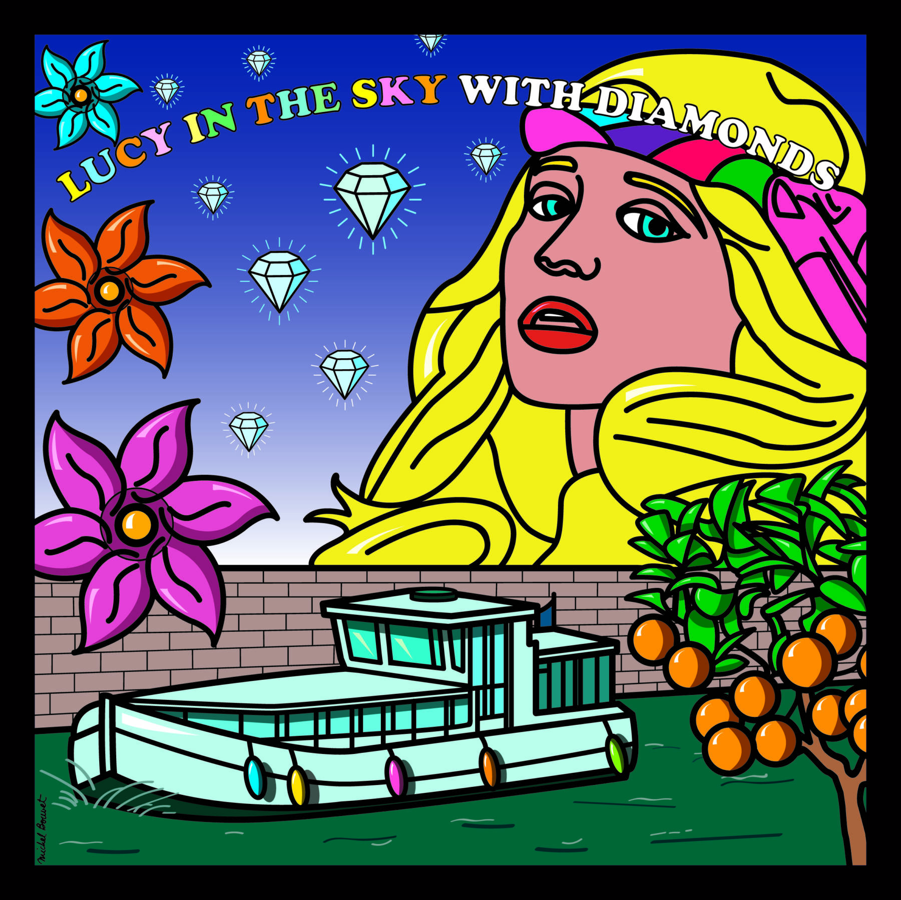 L’exposition I Love the Beatles réunit une série de trente-trois illustrations, chacune inspirée d’une chanson emblématique des Beatles. Chaque œuvre est associée à une chanson et conçue comme une interprétation visuelle de celle-ci. Pour Michel Bouvet, cette série est un retour aux sources et une mémoire sensorielle — celle de l’adolescence, de la découverte de la scène, de l’énergie pop. Elle forme une partition visuelle, intime et joyeuse, et convoque l’époque où la musique, et non les réseaux, formait les communautés: salles de concert, radios libres, disquaires, affiches dans les rues. Les Beatles sont ici une langue partagée, un terrain commun.