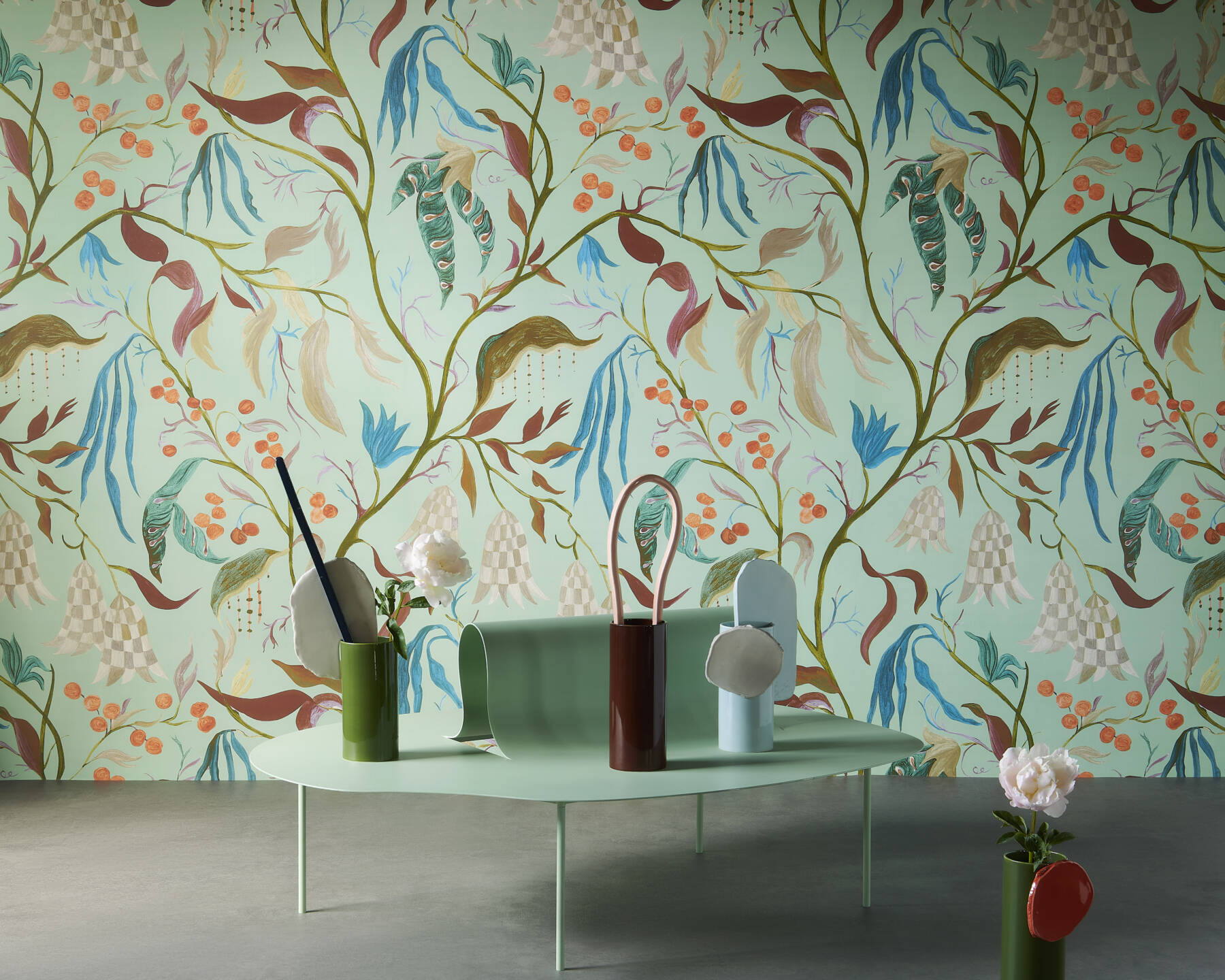 Lucille Boitelle est peintre ornemaniste. Dans son atelier, elle réalise des motifs et décors panoramiques sensibles et minutieusement pensés. Peintes à la main, chacune de ses productions est destinée à intégrer un ensemble plus grand. Consciente de la portée narrative de ses décors, Lucille associe curiosités botaniques, gigantisme des matières, et douceur des paysages flottants pour tracer les contours d’un univers où le bizarre fréquente le beau.