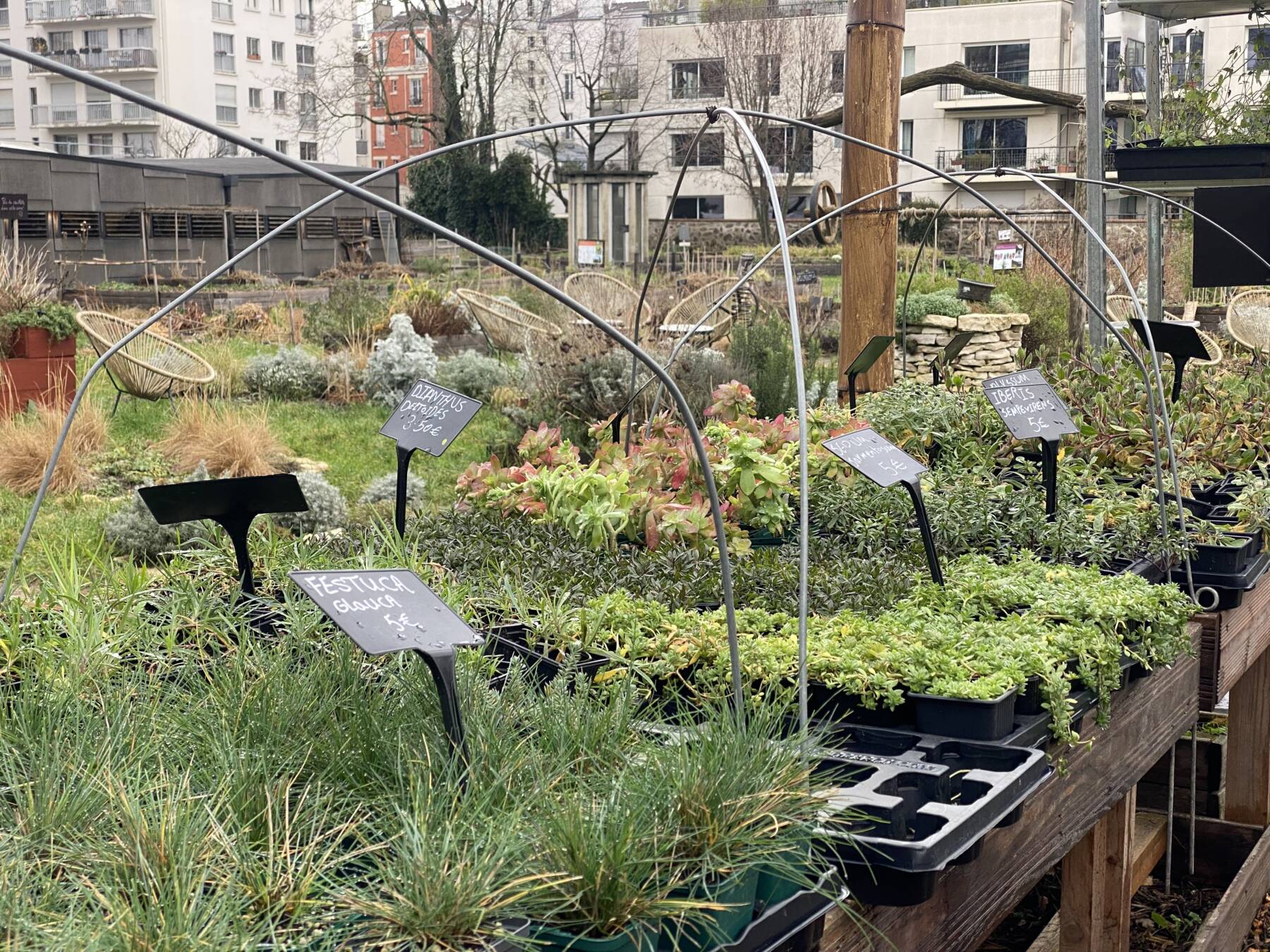 Les serres bioclimatiques, abritent la culture de micro-pousses et de jeunes plants destinés aux restaurateurs et aux habitants du quartier. Plus loin, les espaces fleuris et médicinaux favorisent la pollinisation et enrichissent la biodiversité avec leurs fleurs comestibles et plantes aux vertus thérapeutiques.